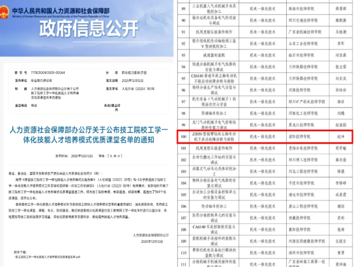 我院机电一体化技术课堂入选全国技工院校工学一体…